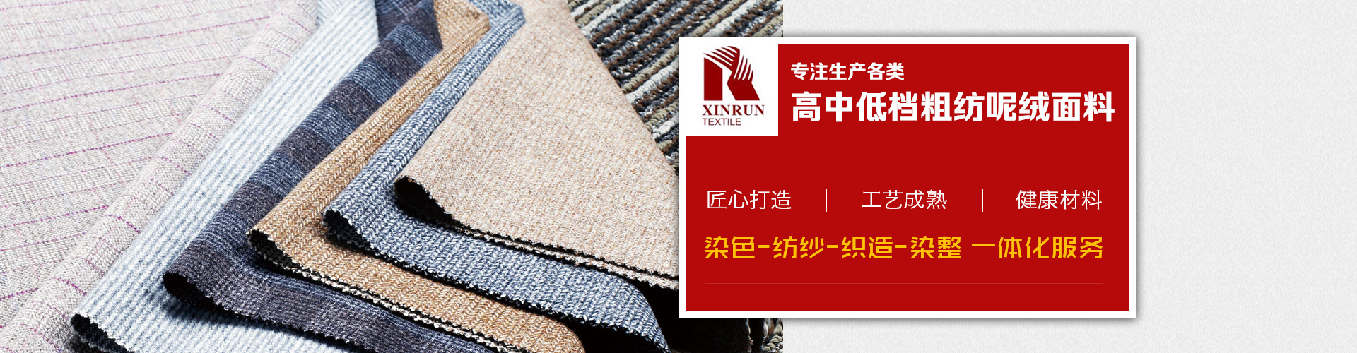 上海鑫潤(rùn)紡織品有限公司是一家從事開(kāi)發(fā),生產(chǎn),銷售為一體的毛紡面料公司,公司生產(chǎn)各類高中低檔粗紡呢絨面料,并下轄控股毛紡廠3家,擁有先進(jìn)的生產(chǎn)設(shè)備和的管理體系,不僅在國(guó)內(nèi)市場(chǎng)享有良好地信譽(yù),而且產(chǎn)品遠(yuǎn)銷美國(guó),歐洲,俄羅斯,韓國(guó),日本等不同國(guó)家,贏得了國(guó)外市場(chǎng)的一致好評(píng)。憑借優(yōu)良的品質(zhì),良好的信譽(yù),我公司還是ZARA,H&M,C&A,JACK&JONES,MANGO,TARGET,PROMODE,ORSAY等國(guó)外知名品牌的供應(yīng)商。